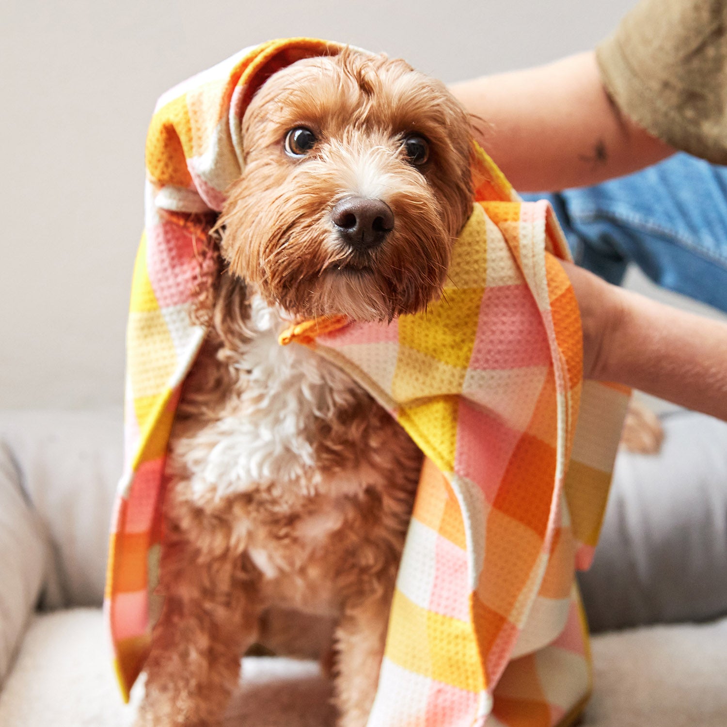 Das Hundehandtuch, das schlammige Pfoten, nasses Fell und das Chaos nach dem Schwimmen im See schnell trocknet. Egal, ob es sich um Strandtage, Spaziergänge auf dem Land oder die Badezeit zu Hause handelt, dieses Handtuch hilft, Ihren Hund mit weniger Schmutz und weniger Aufwand zu trocknen.