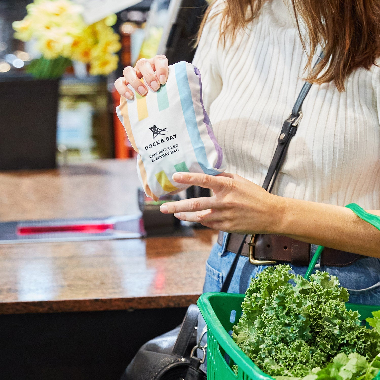 Hergestellt aus 100 % recycelten Materialien, ist dies Ihre Tasche für jeden Tag. Werfen Sie sie über die Schulter, packen Sie sie voll und machen Sie sich auf Ihr nächstes Abenteuer. Sie lässt sich bei Nichtgebrauch leicht zusammenfalten, perfekt für Reisen, und sieht genauso gut aus, egal ob Sie zum Einkaufen oder ans Meer fahren.