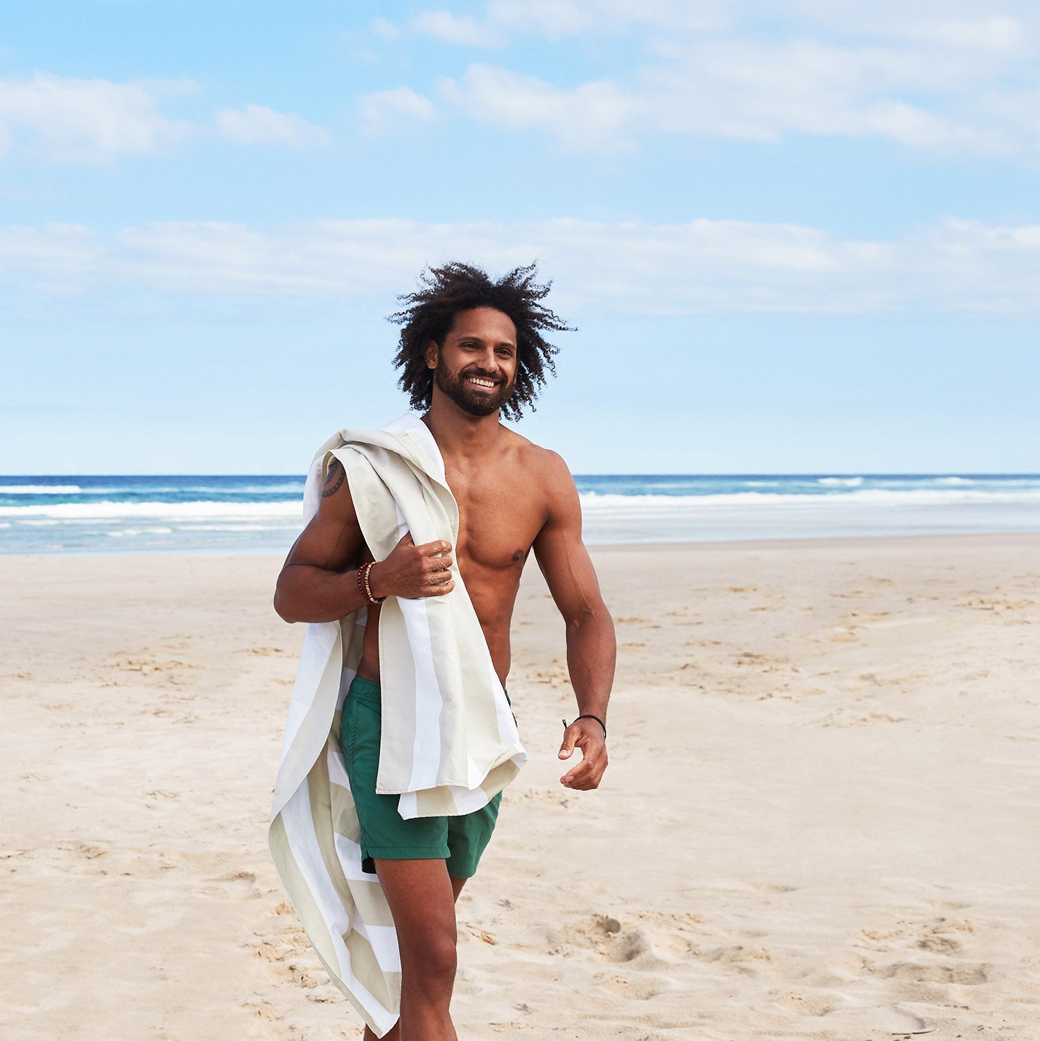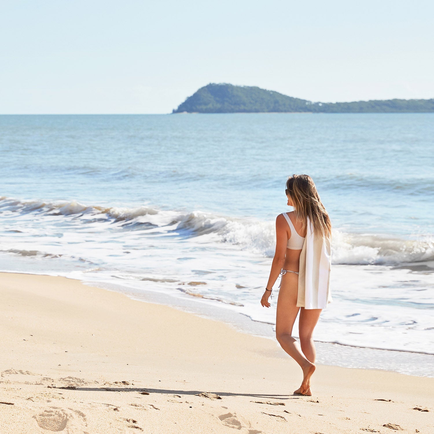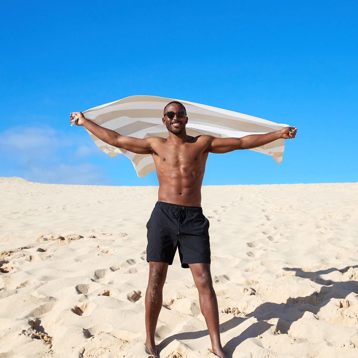 Notre collection signature Cabana. Là où tout a commencé. La serviette de plage conçue pour les longues journées au bord de l'eau et les voyages faciles entre les deux. Assez grande pour s'étirer confortablement, mais suffisamment légère pour être transportée sans être encombrante, elle est faite pour les journées à la plage, les séances à la piscine et les vacances. Notre taille XL couvre entièrement un transat, donc pas de pieds qui pendent. Elle est également livrée avec un crochet pratique, pour que votre serviette ne se retrouve jamais en tas sur le sol.