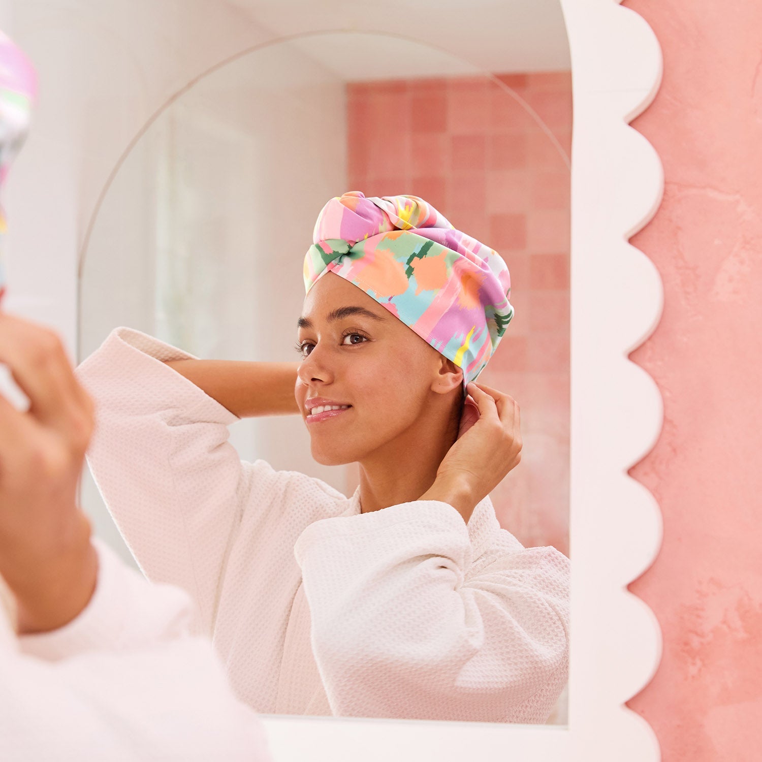 Conçue pour tous les types et longueurs de cheveux, mais découvrez nos turbans gaufrés qui fonctionnent encore plus efficacement avec les cheveux longs et épais. Emballée dans une boîte assortie, parfaite pour offrir.