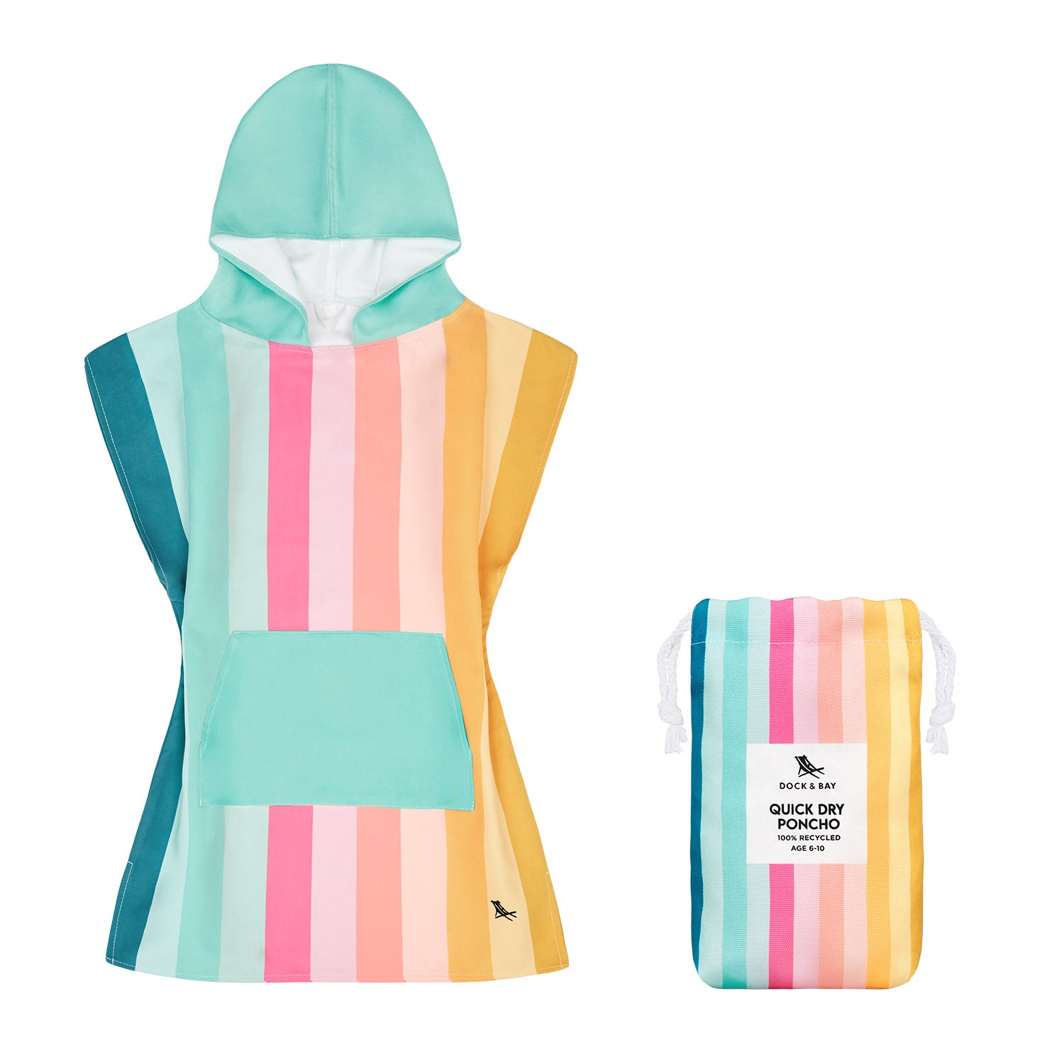 Fabriqué à partir de notre tissu DryQ™ 100 % recyclé de première qualité, il est léger, sèche rapidement et est doux pour la peau. La forme décontractée du poncho facilite le changement, tandis que la capuche offre une chaleur et une couverture supplémentaires lorsque les petits en ont le plus besoin.